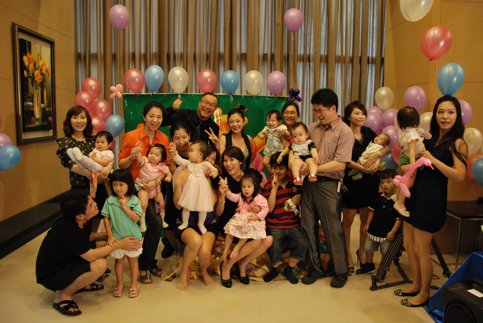 哇, 除了生日派對外, 這還是個年紀最小的偶像和最大的迷哥迷姐相見歡聚會呢! 來來來, 大家看好, 相機準備好, 小寶貝要展現簽名和同時微笑的偶像魅力囉!